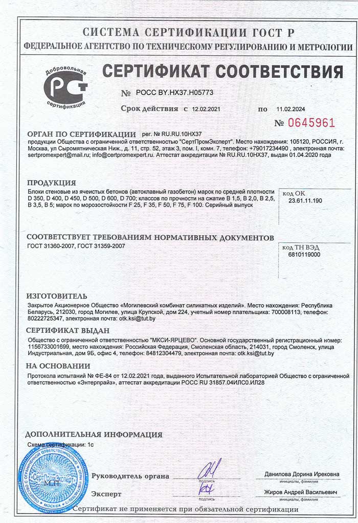 Газобетон Могилевский КСИ D400 300x250x625 мм